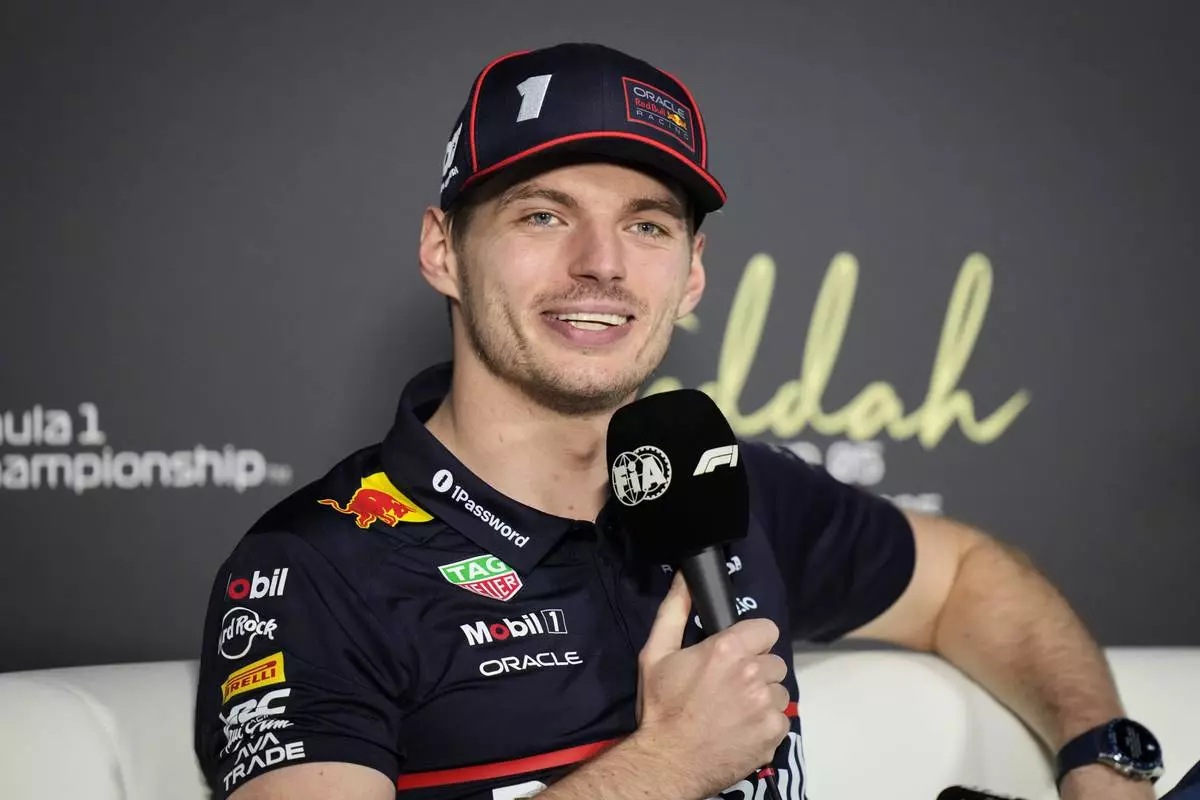 Red Bull driver Max Verstappen of the Netherlands speaks during a news conference ahead of the Formula One Saudi Arabian Grand Prix at the Jeddah Corniche Circuit in Jeddah, Saudi Arabia, Thursday, April 17, 2025. (AP Photo/Darko Bandic)