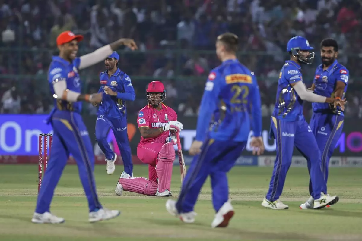 Rajasthan couldn’t recover from 47-5 inside the batting powerplay when Trent Boult (3-28) and Jasprit Bumrah (2-15) picked up two wickets each before Impact Player Karn Sharma spun the lower order to finish with 3-23.