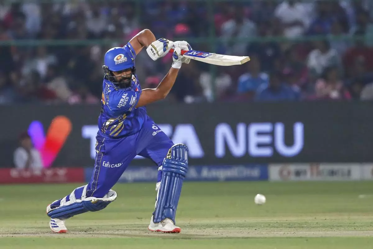 Mumbai Indians' Rohit Sharma plays a shot during the Indian Premier League cricket match between Rajasthan Royals and Mumbai Indians at Sawai Mansingh Stadiumin Jaipur, India, Thursday, May 1, 2025. (AP Photo/Surjeet Yadav)