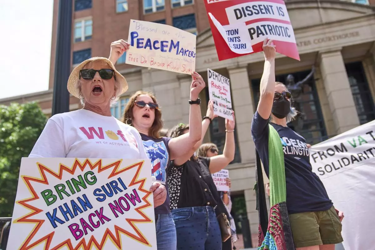 Ahmad was among a group of people who gathered at the courthouse to show support. They included Khan Suri's wife, Georgetown students and faculty and U.S. Rep. Don Beyer, a Democrat who represents the northern Virginia district where Khan Suri lives.