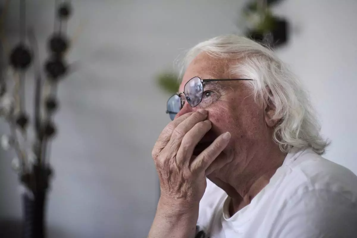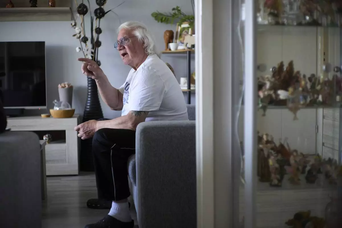 Ben Buitenhuis, a 83-year-old surivor of the 1944-1945 Hunger Winter, reacts during an interview in Delft, Netherlands, Tuesday, April 29, 2025. (AP Photo/Peter Dejong)