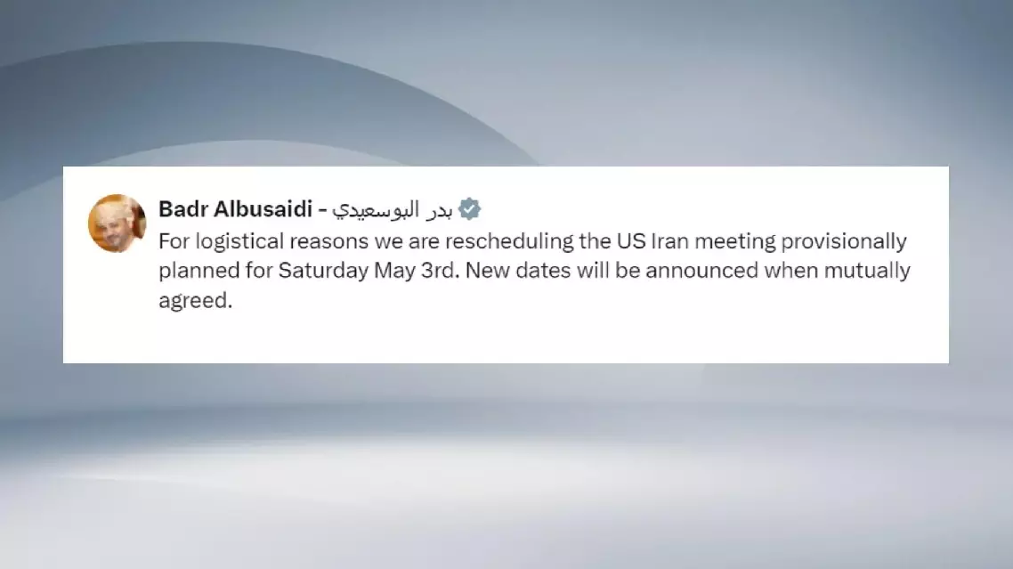 The fourth round of the Oman-mediated U.S.-Iran talks scheduled for Saturday in Rome has been postponed for logistical reasons, Omani Foreign Minister Sayyid Badr bin Hamad Al Busaidi said on Thursday.
