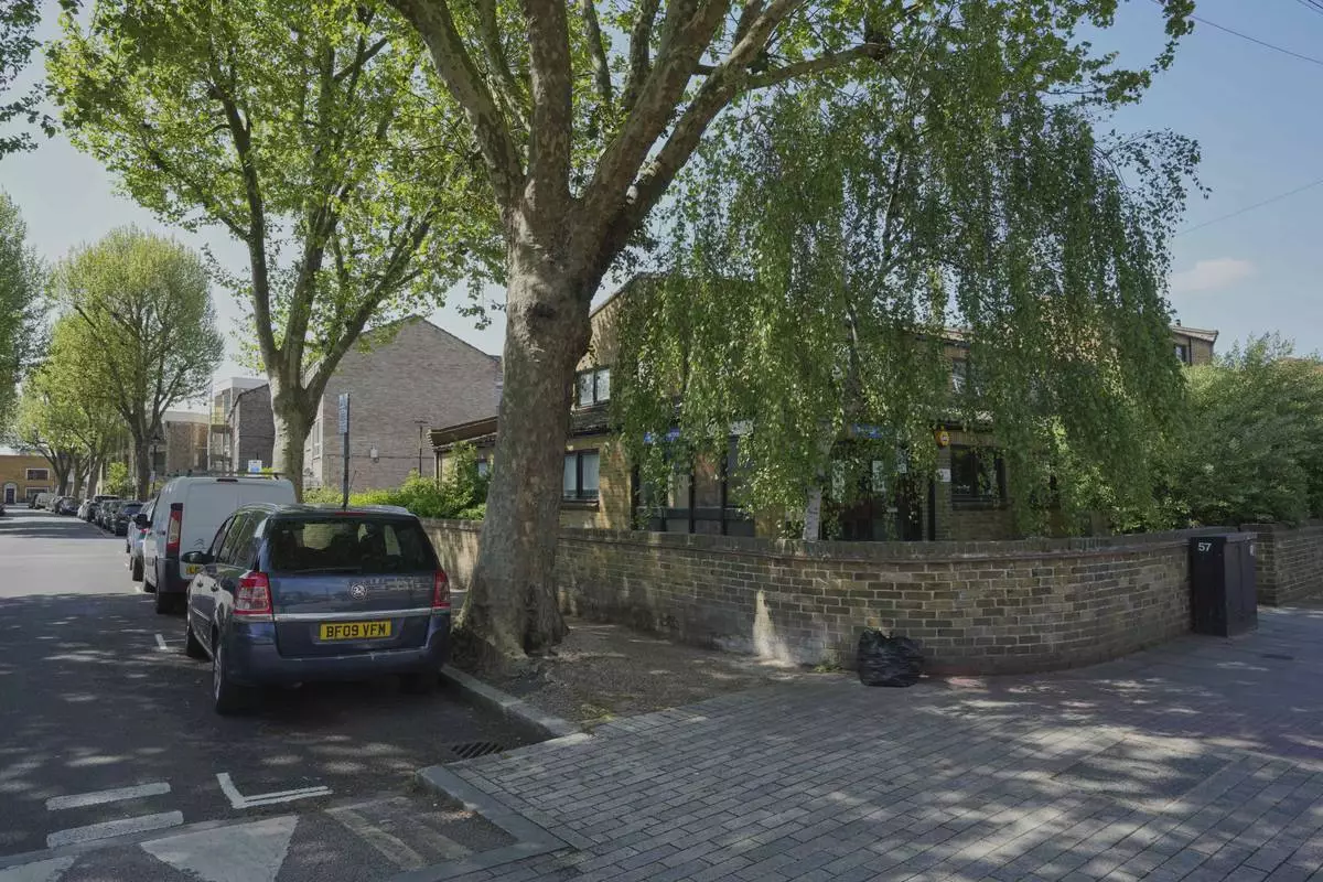 A general view of St. Stephens Road, in Bow, in London, Thursday, April 24, 2025. (AP Photo/Kin Cheung)