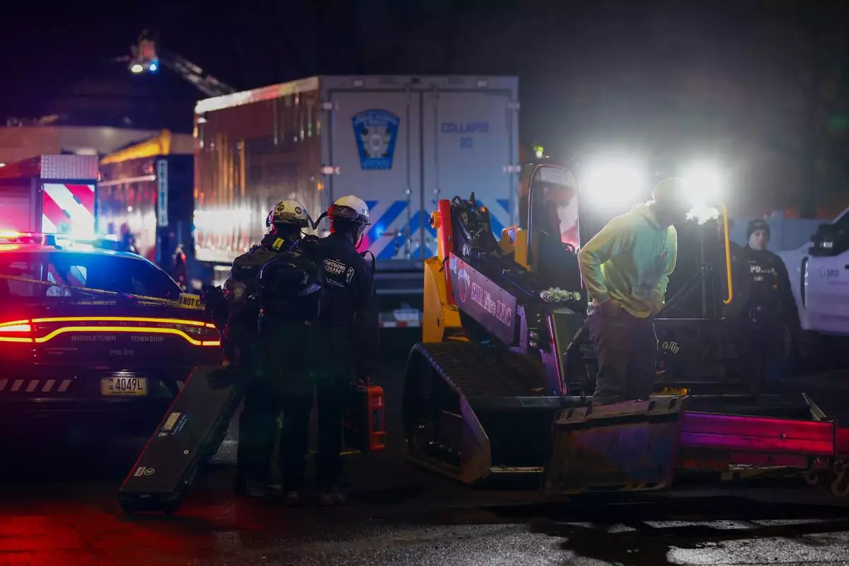 First responders gather at the scene of an explosion at Silver Lake Healthcare Center in Bristol Township, Pa., Tuesday, Dec. 23, 2025. (AP Photo/Tassanee Vejpongsa)
