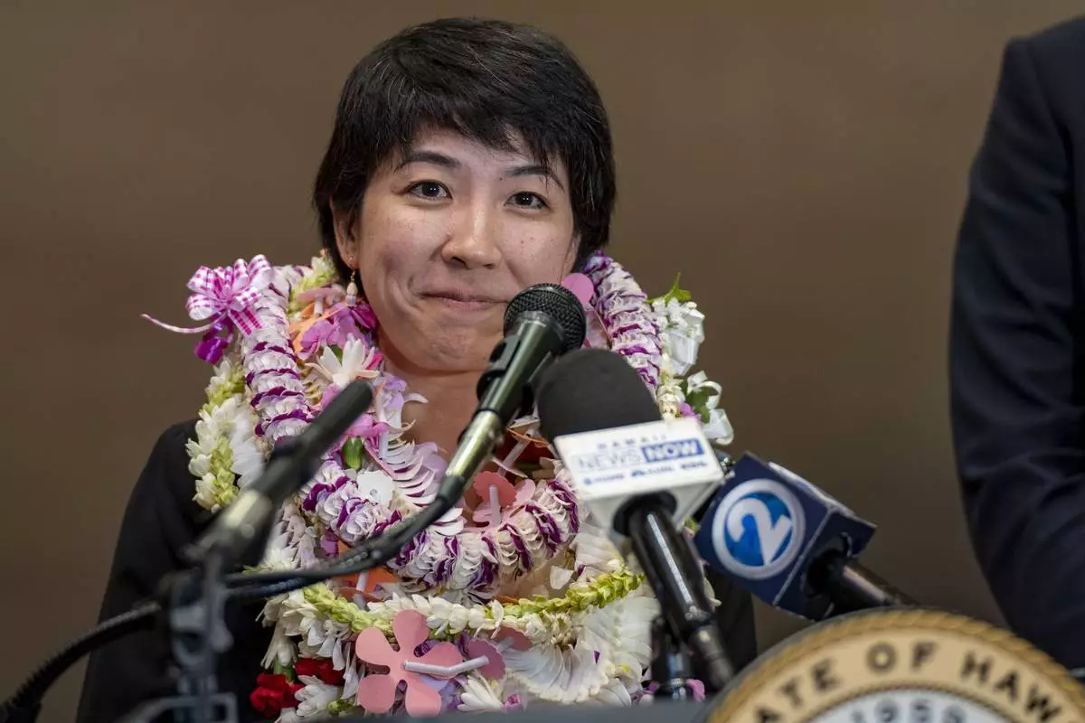 Hawaii House Vice Speaker Linda Ichiyama speaks to journalists during a press conference at the state Capitol, Friday, May 2, 2025, in Honolulu. (AP Photo/Mengshin Lin)