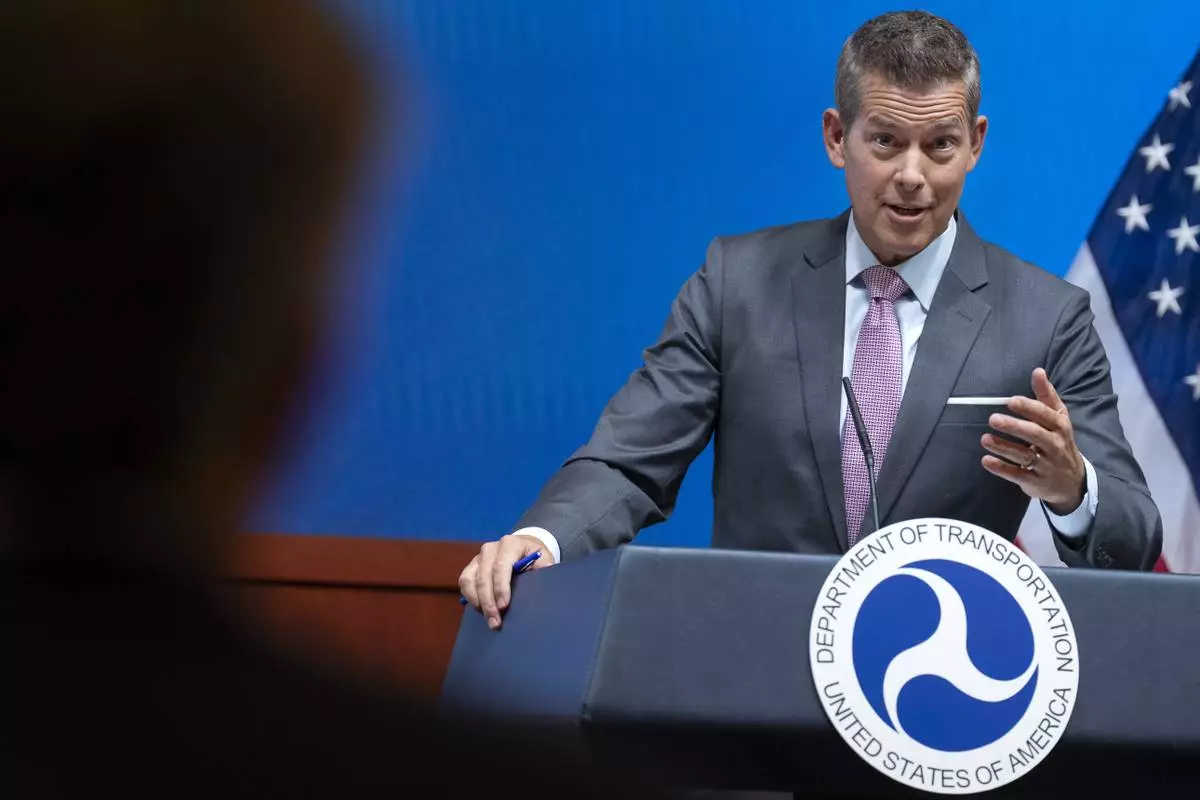 FILE - Transportation Secretary Sean Duffy speaks during a news conference, March 11, 2025, at the Department of Transportation in Washington. (AP Photo/Jacquelyn Martin, file)