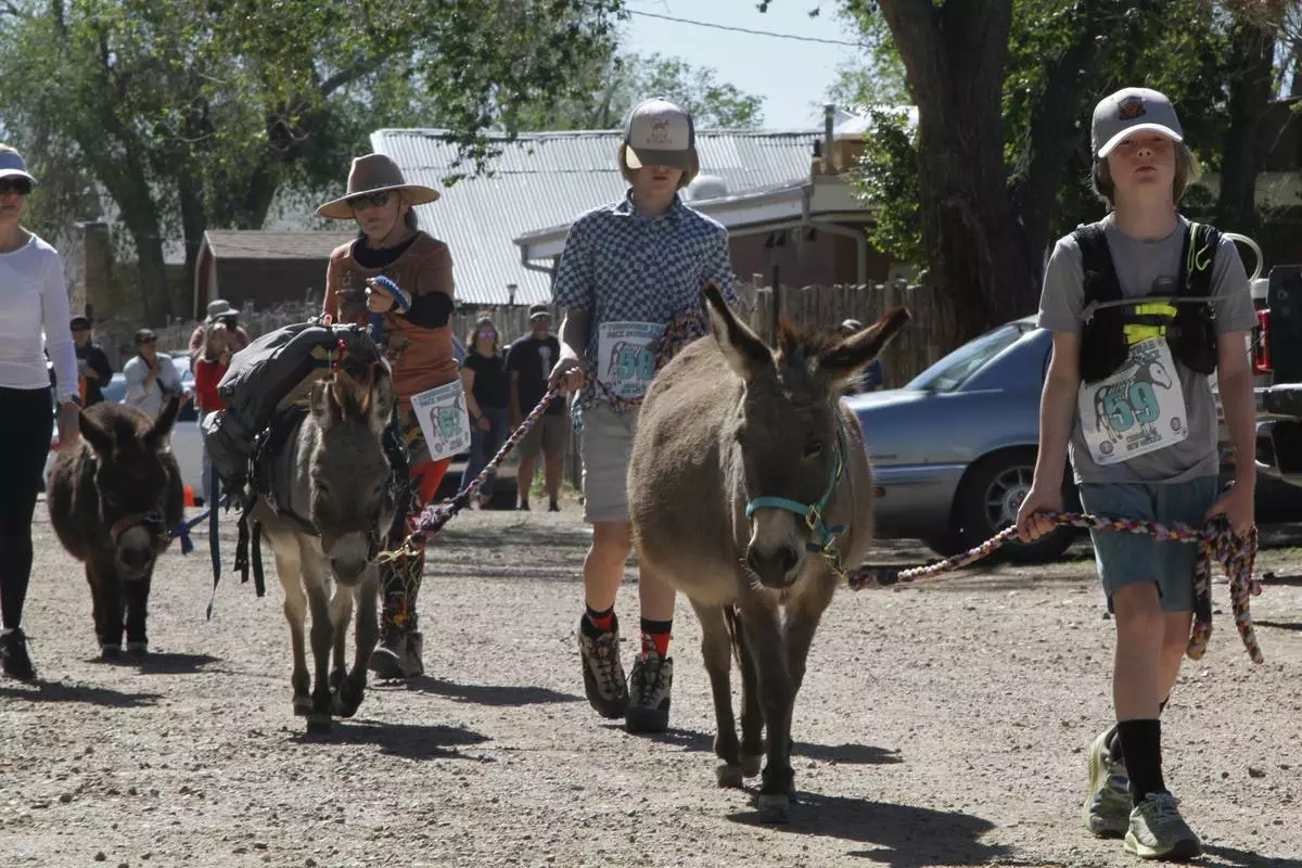 Some 70 teams tested their skills Saturday in a race winding through the historic, turquoise-mining town of Cerrillos in northern New Mexico. Runners led burros by rope on 6-mile (10-kilometer) and 3-mile (5-kilometer) courses on unpaved roads and single-track desert trails.