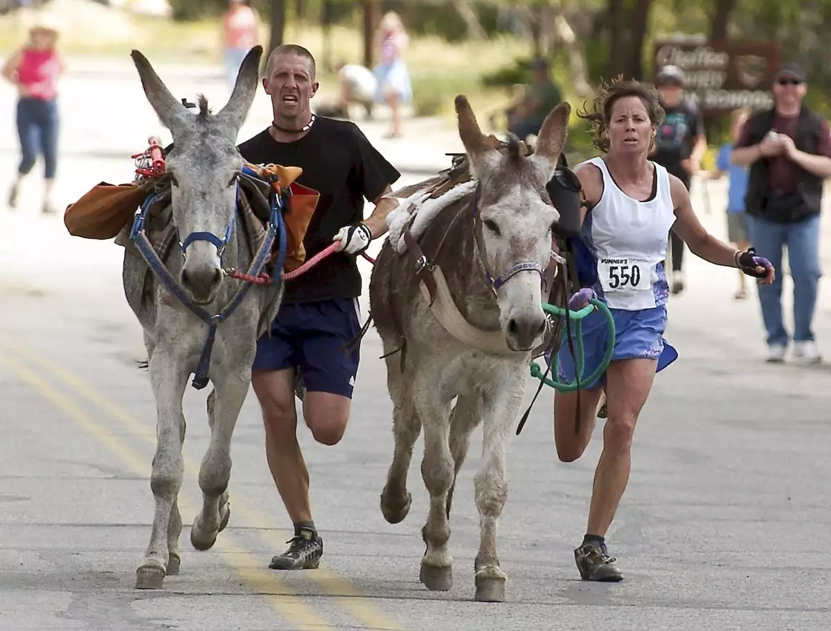 Runners can’t ride the burro but can push, pull and coax the animal as long as they don't abuse it. Some racers swing a rope in circles — like a lasso — to encourage movement. Others on the trail cry out, “Hup, hup!”