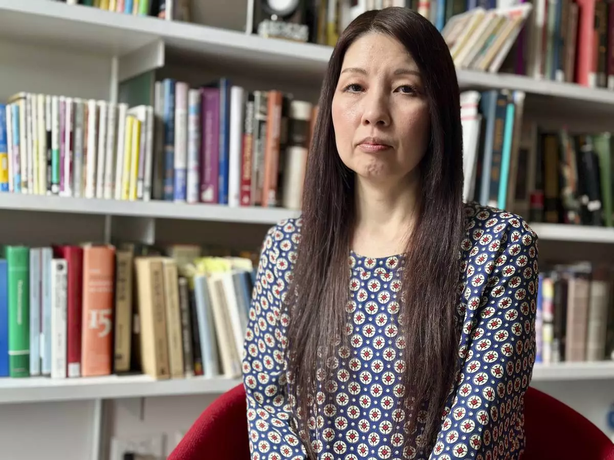 Sachi Schmidt-Hori, a Japanese literature and culture professor who was a consultant on the Assassin's Creed Shadows video game, poses for a portrait in her office at Dartmouth College in Hanover, New Hampshire, on April 2, 2025. (AP Photo/Holly Ramer)