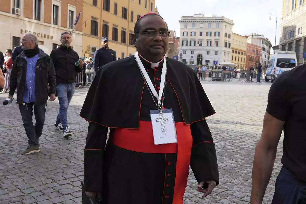Cardinal Anthony Poola arrives at the Vatican, Saturday, May 3, 2025, to attend the General Congregation of cardinals in the New Synod Hall where they are preparing for the upcoming conclave starting on May 7, to elect the 267th Roman pontiff. (AP Photo/Andrew Medichini)