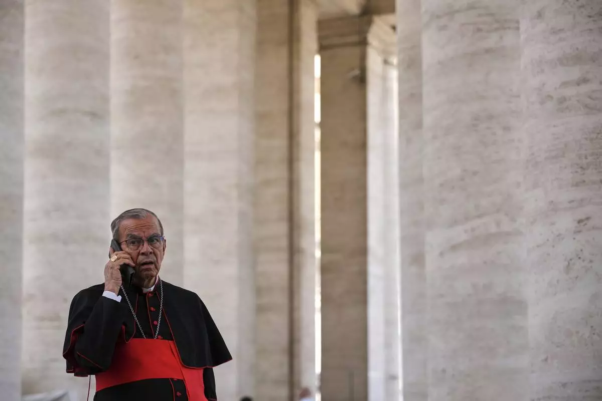 Cardinal Gregorio Rosa Chavez leaves the Vatican, Saturday, May 3, 2025, after attending a session of the General Congregation of cardinals in the New Synod Hall where they are preparing for the upcoming conclave starting on May 7, to elect the 267th Roman pontiff. (AP Photo/Andrew Medichini)