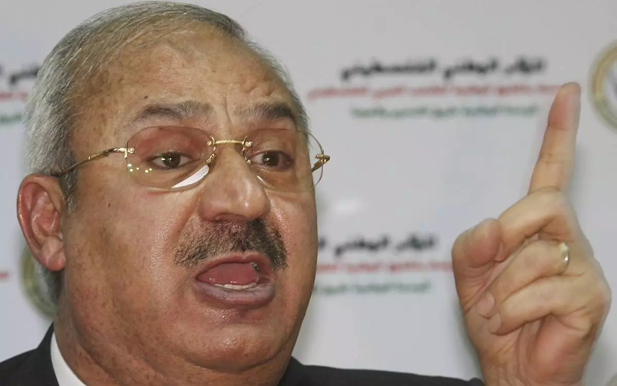 FILE - Talal Naji, the leader of the Popular Front for the Liberation of Palestine-General Command speaks during a press conference in Damascus, Syria, Jan. 21, 2008. (AP Photo/Bassem Tellawi, File)