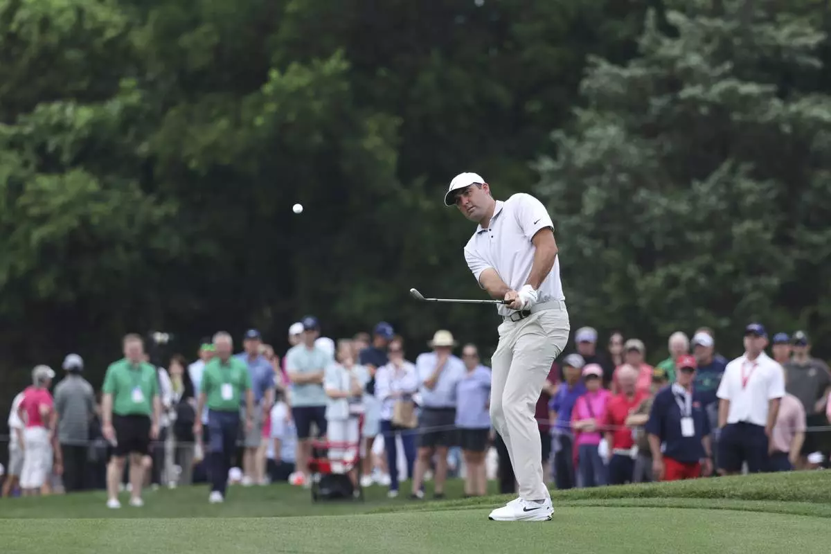 Scheffler couldn't see his second shot from the rough after impact, but it reached the green. He two-putted from 31 feet for the biggest 54-hole lead on the PGA Tour since Rory McIroy also led by eight on the way to winning the 2011 U.S. Open.
