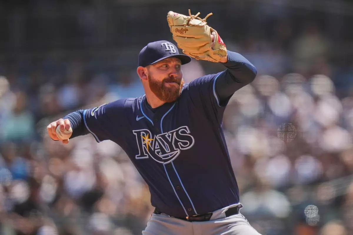 Tampa Bay Rays' Zack Littell pitches during the first inning of a baseball game against the New York Yankees, Saturday, May 3, 2025, in New York. (AP Photo/Frank Franklin II)