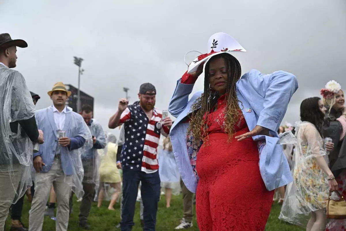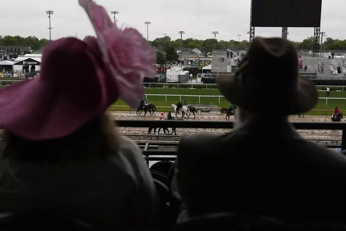 Race enjoy the grounds at Churchill Downs before the 151st running of the Kentucky Derby horse race Saturday, May 3, 2025, in Louisville, Ky. (AP Photo/Jon Cherry)