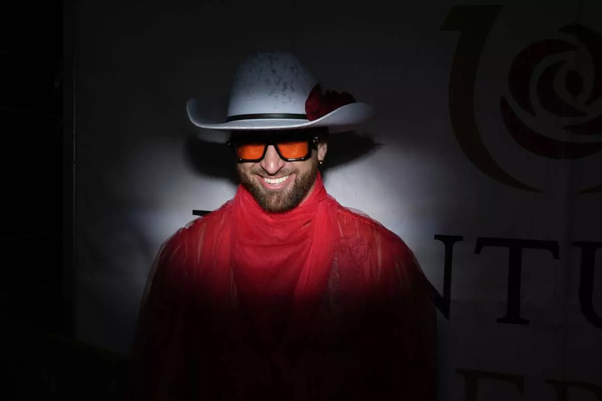 A person smiles at Churchill Downs before the 151st running of the Kentucky Derby horse race Saturday, May 3, 2025, in Louisville, Ky. (AP Photo/Brynn Anderson)