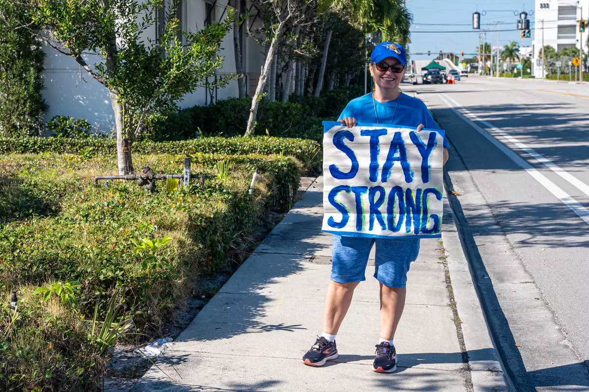 Karen Blake of Ft. Lauderdale, poses with a sign at the "Rally in Support of Ukraine" organized by the Ukrainian Association of Florida as Ukrainian President Volodymyr Zelenskyy meets with U.S. President Donald Trump at Mar-a-Lago in West Palm Beach, Fla., Sunday, Dec. 28, 2025. (AP Photo/Jen Golbeck)