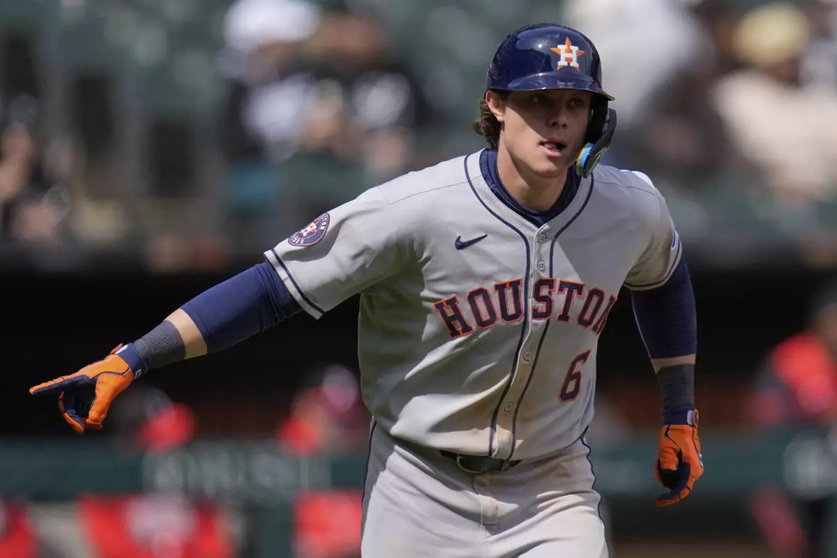 Houston Astros' Jake Meyers (6) runs the bases after hitting a 3-run home run during the sixth inning of a baseball game against the Chicago White Sox, Saturday, May 3, 2025, in Chicago. (AP Photo/Erin Hooley)