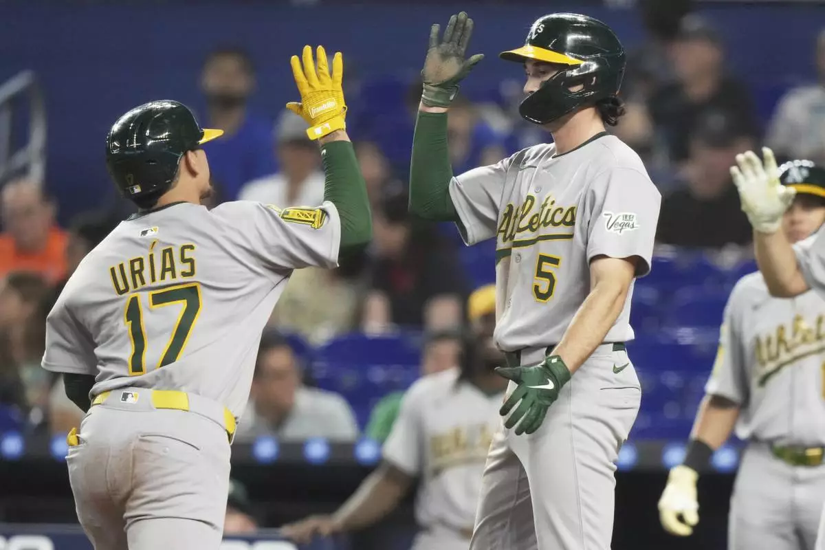 The A’s opened a 4-2 lead on Urías’ two-run homer off Max Meyer in the fourth. The Marlins responded with two in the fifth on Sanoja’s double and Xavier Edwards’ sacrifice fly in the fifth.