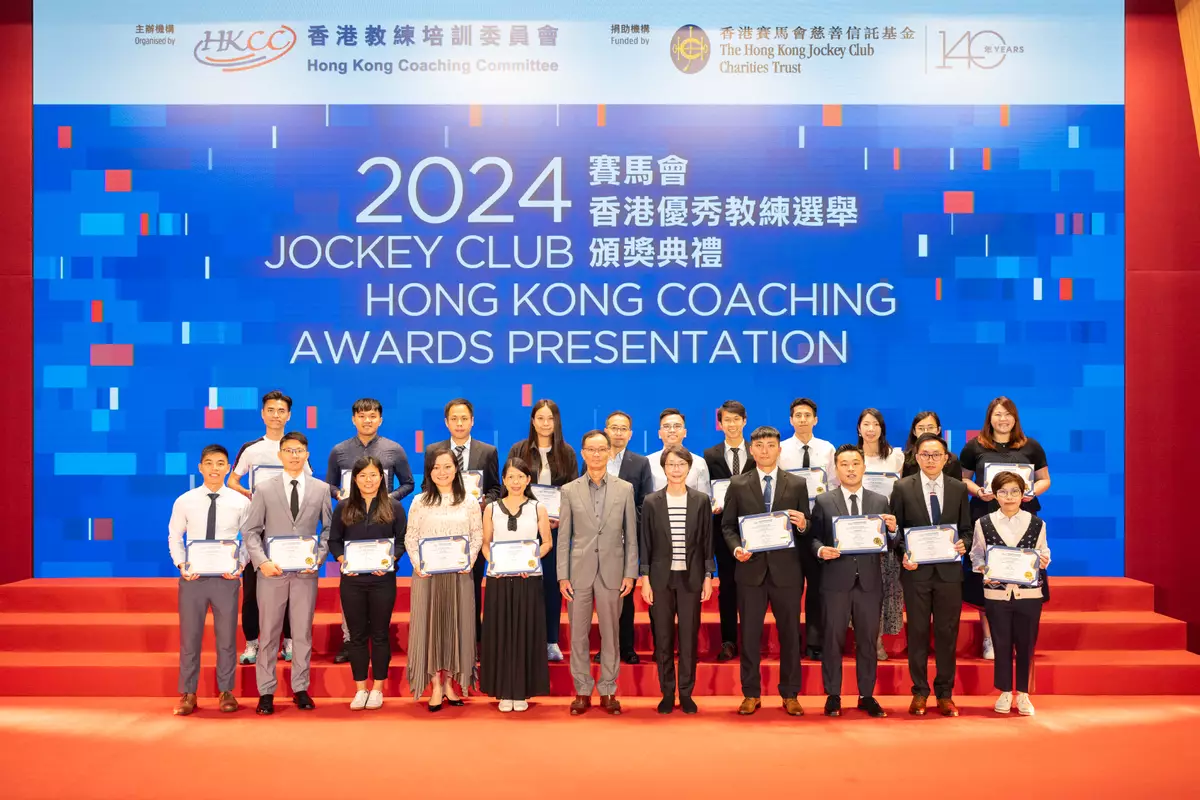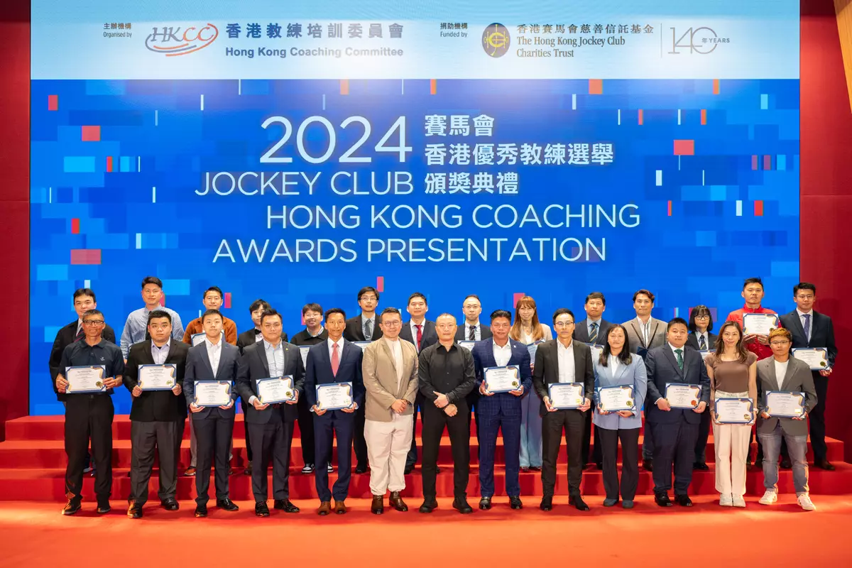 Organised by the Hong Kong Coaching Committee (HKCC) and funded by The Hong Kong Jockey Club Charities Trust, the 2024 Jockey Club Hong Kong Coaching Awards Presentation Ceremony was held at the Hong Kong Sports Institute (HKSI) today, recognising coaches who made outstanding contributions to the development of sports at the elite, community and school levels in 2024.