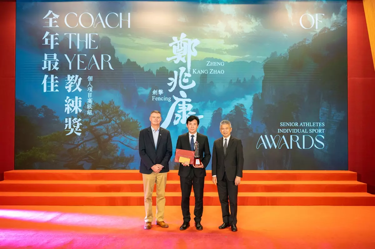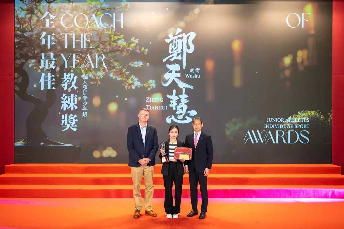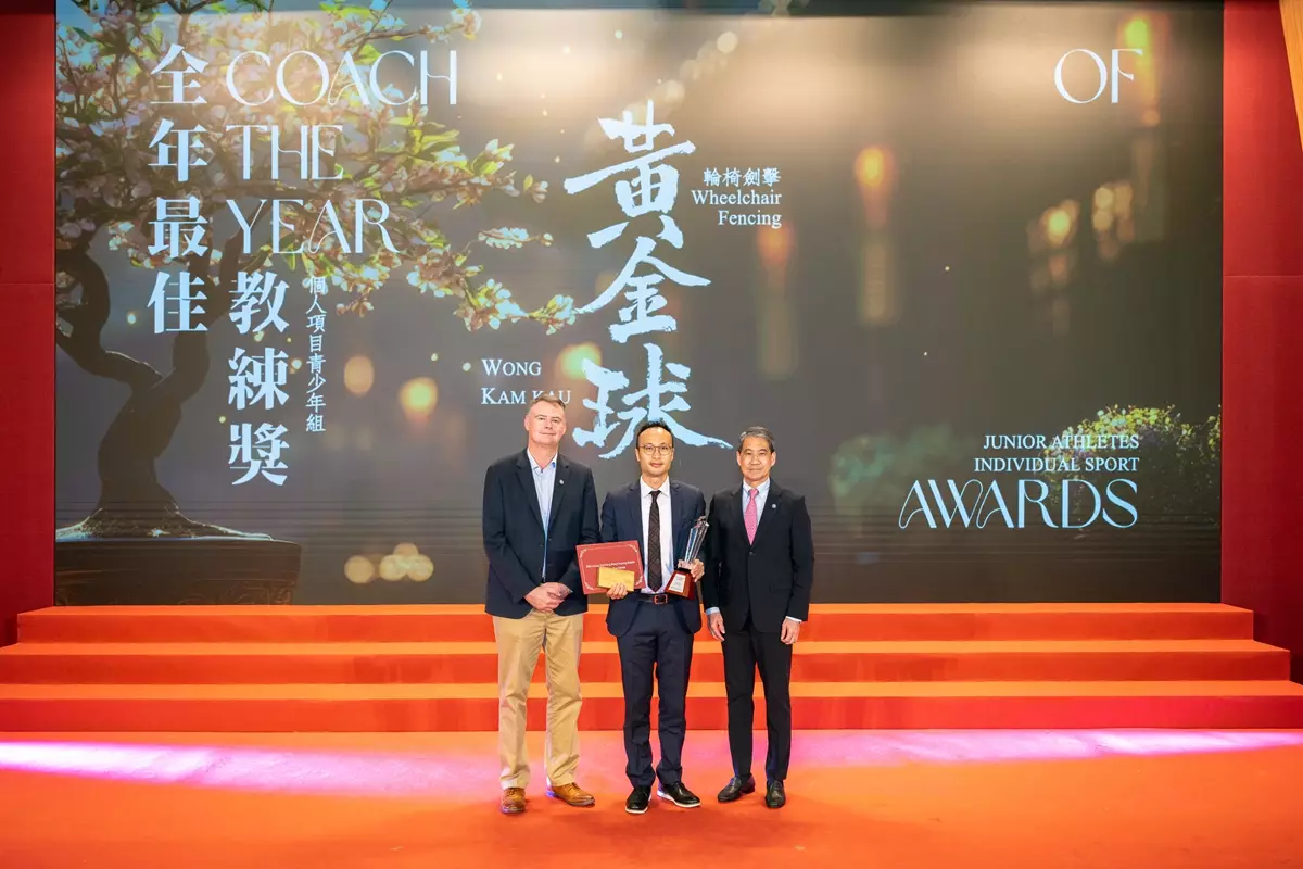 Wheelchair fencing Coach Wong Kam-kau received the COY for the first time. Under his guidance, young athletes have shown continuous improvement. Notably, junior fencer Sean Glass won 1 silver and 1 bronze at the 2024 World Championships U17/U23, and added another silver at the Asian Championships. Wushu Coach Zheng Tianhui also claimed the COY title for the first time, she led the junior athletes to achieve outstanding results at the 9th World Junior Wushu Championships, contributing 2 gold, 3 silver and 1 bronze.