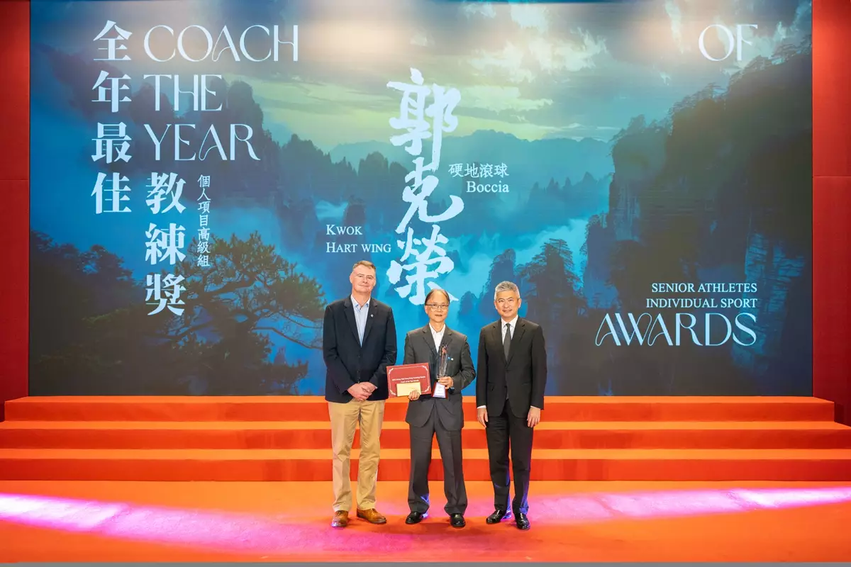 Boccia coach Kwok Hart-wing has been awarded the COY for the sixth time. In 2024, he led the Hong Kong boccia team to secure 8 gold, 4 silver, and 4 bronze across three World Boccia Cups, then went on to achieve the best-ever performance at the Paris Paralympic Games, winning 3 gold and 2 silver. Fencing coach Zheng Kang-zhao won the COY for the seventh time, having previously been awarded six times in wheelchair fencing. Coach Zheng has consistently emphasised systematic training for athletes. Under his leadership, Cheung Ka-long and Kong Man-wai competed in the Paris 2024 Olympics, where they won 2 gold, making history for the Hong Kong’s fencing scene.