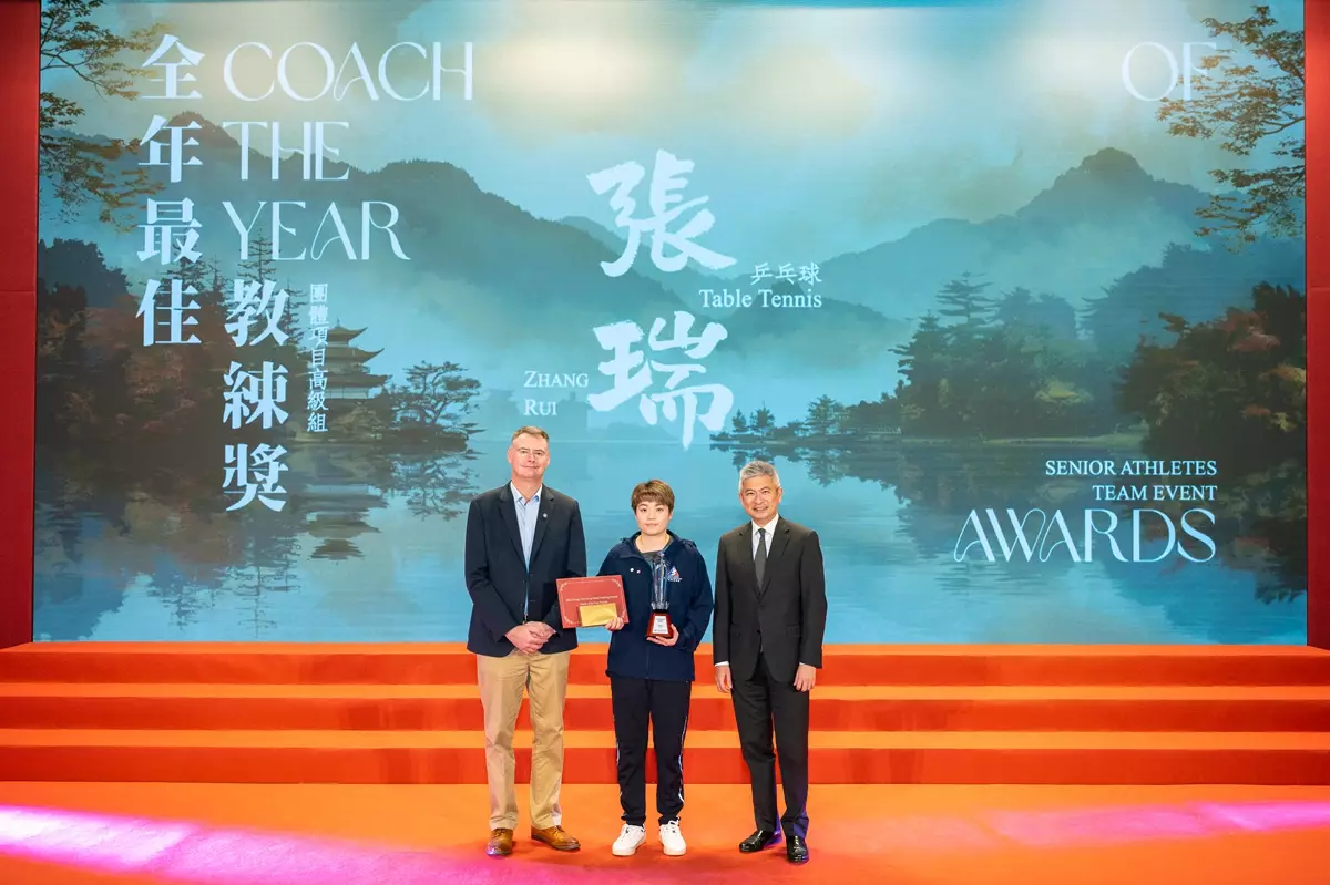 Para badminton (physical disability) coach Chan Yan-kit was awarded the COY for the first time. Under his coaching, the Para badminton team maintained a steady performance throughout the year, winning multiple medals in international competitions, including a silver medal in the men’s doubles SH6 by Chu Man-kai and Wong Chun-yim at the World Championships. Table tennis coach Zhang Rui earned the COY title for the second time. In 2024, she led athletes Doo Hoi-kem, Lam Yee-lok, Lee Ho-ching, Ng Wing-lam, and Zhu Chengzhu to semi-finals of the ITTF World Team Table Tennis Championships, capturing a bronze medal and qualifying for the Paris Olympics.