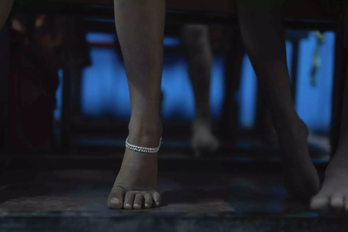 A girl wearing a silver anklet attends class at the Signal Shala school in Thane near Mumbai, India, April 9, 2025. (AP Photo/Rafiq Maqbool)
