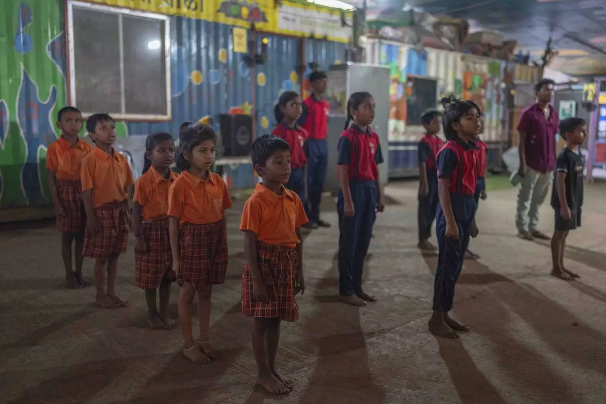 Students attend a Marathi language class at the Signal Shala school in Thane near Mumbai, India, April 3, 2025. (AP Photo/Rafiq Maqbool)