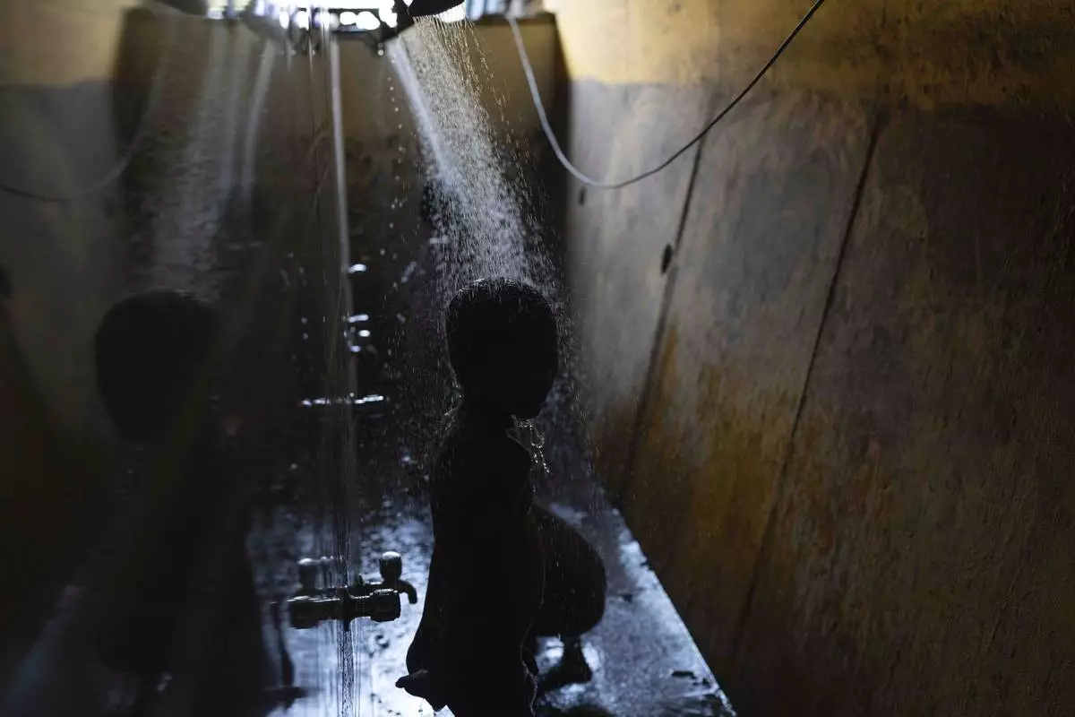 Students shower at the Signal Shala school in Thane near Mumbai, India, April 9, 2025. (AP Photo/Rafiq Maqbool)