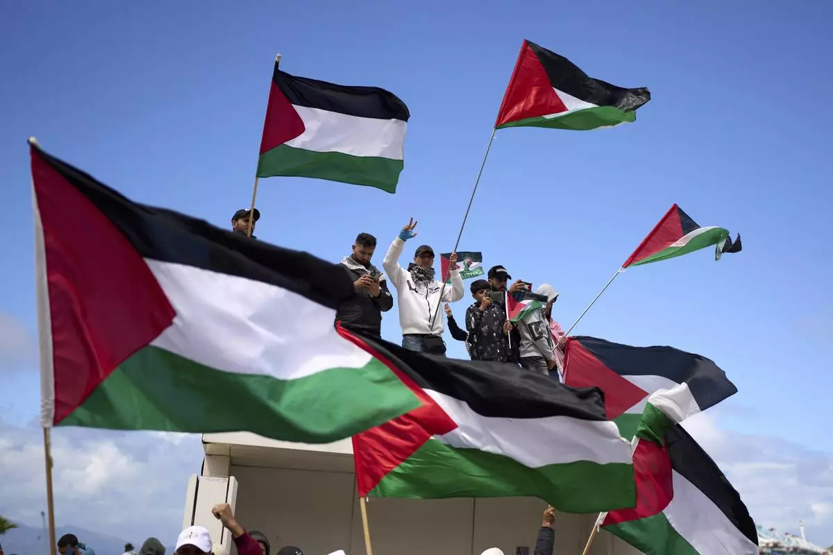 Amid shipping cranes and stacked containers, 34-year-old agricultural engineer Ismail Lghazaoui marched recently through a sea of Palestinian flags and joined protesters carrying signs that read “Reject the ship,” in reference to a vessel transporting fighter jet components from Houston, Texas.