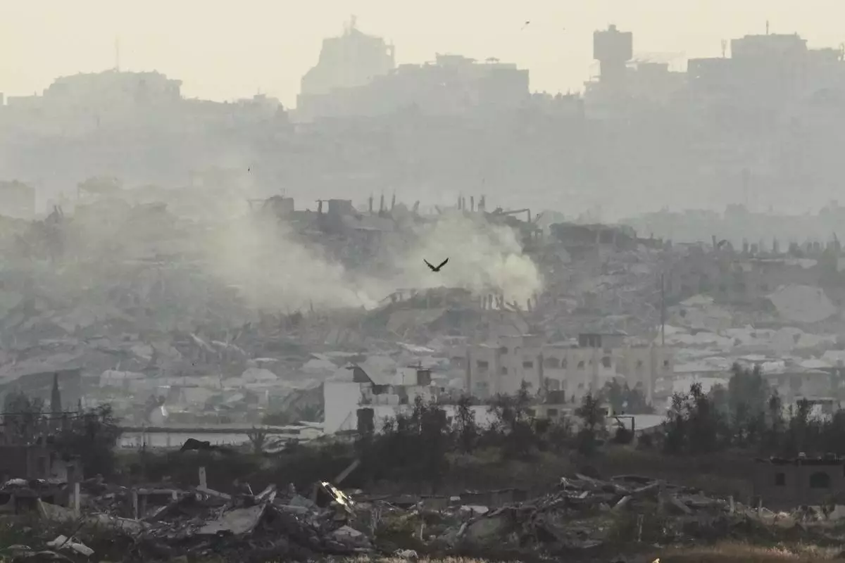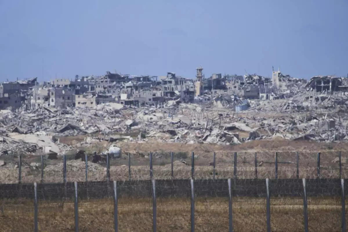 Destroyed buildings in the Gaza Strip, seen from southern Israel, Sunday, May 4, 2025. (AP Photo/Ariel Schalit)