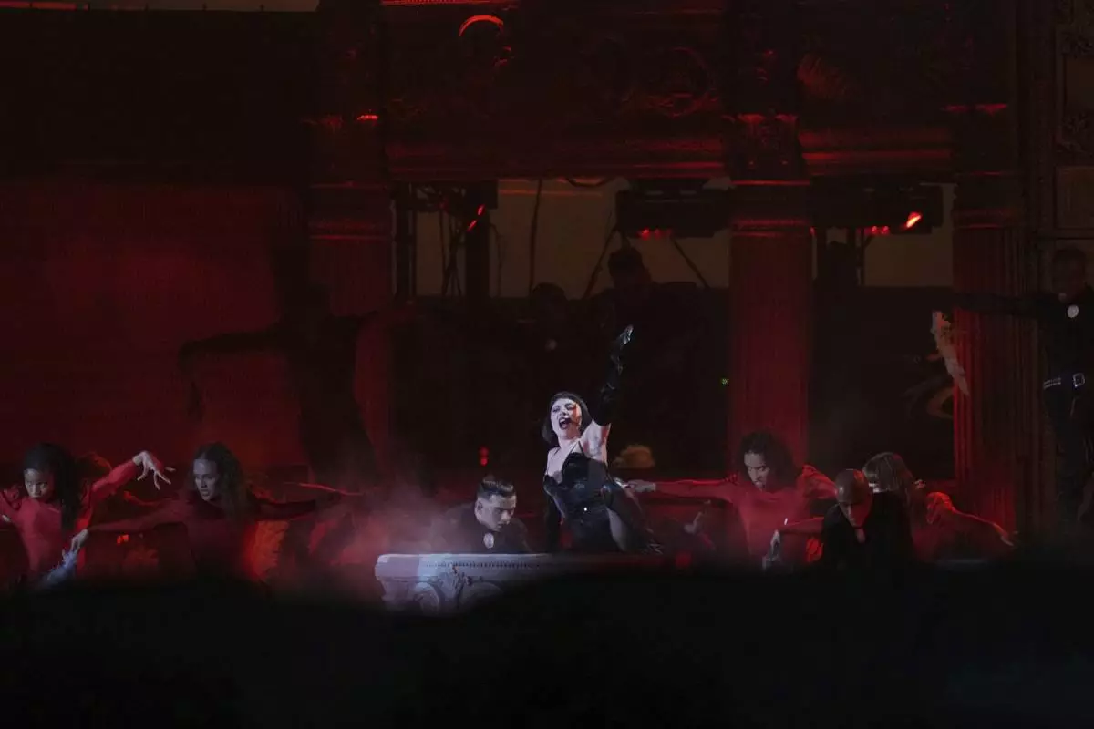 Lady Gaga performs during her free concert on Copacabana Beach in Rio de Janeiro, Saturday, May 3, 2025. (AP Photo/Silvia Izquierdo)