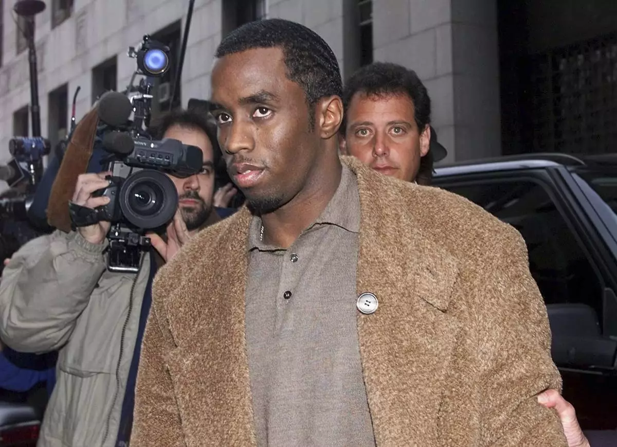 FILE - Rapper Sean "Puffy" Combs arrives at the Manhattan District Attorney's office in New York, on Jan. 4, 2000, where Combs and his girlfriend Jennifer Lopez were to appear before a grand jury investigating the Times Square nightclub shooting that left three people injured in late Dec. 1999. (AP Photo/Kathy Willens, File)
