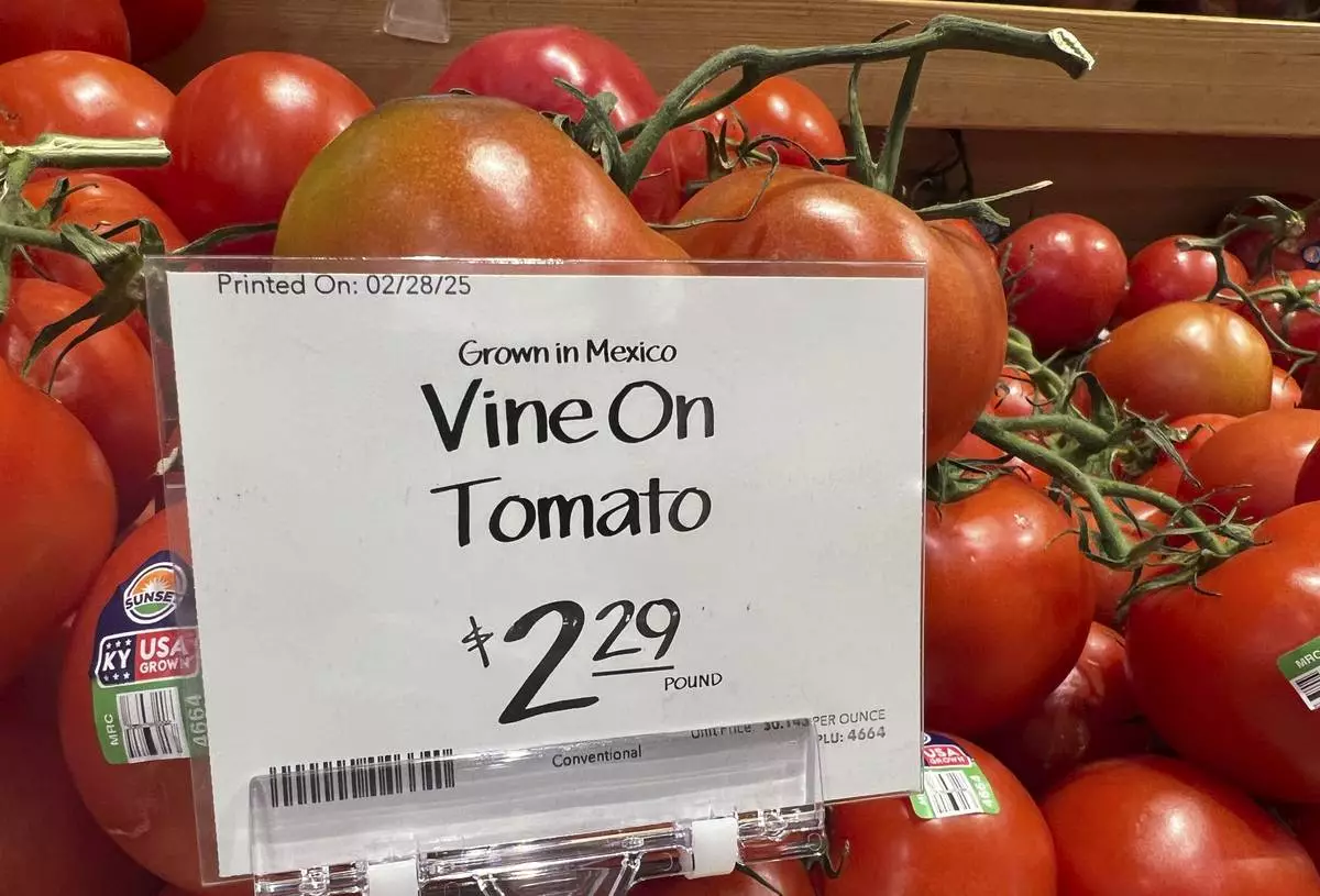 FILE - Tomatoes imported from Mexico are for sale in a supermarket in Miami as the United States imposed 25% tariffs on goods from Canada and Mexico, starting a trade war with its closest neighbors and allies Wednesday, Mar. 5, 2025. (AP Photo/Lynne Sladky, File)