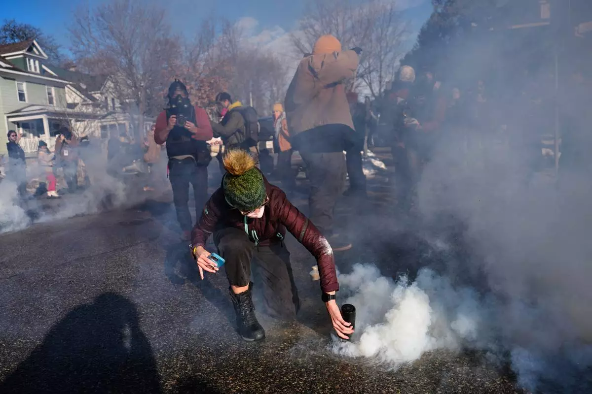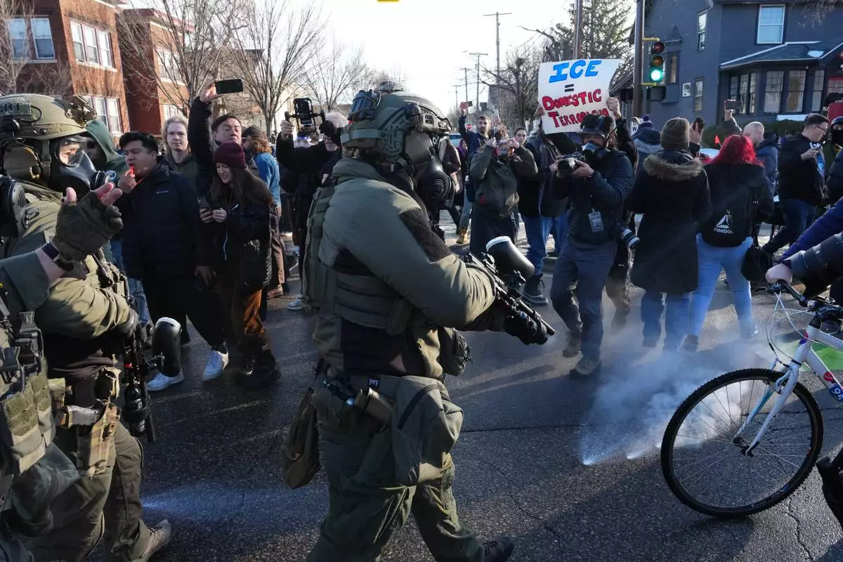 Gas clouds filled a Minneapolis street near where Renee Good was fatally shot in the head by an immigration agent last week. A man scrubbed his eyes with snow and screamed for help while agents in an unmarked Jeep sprayed an orange irritant and drove away.