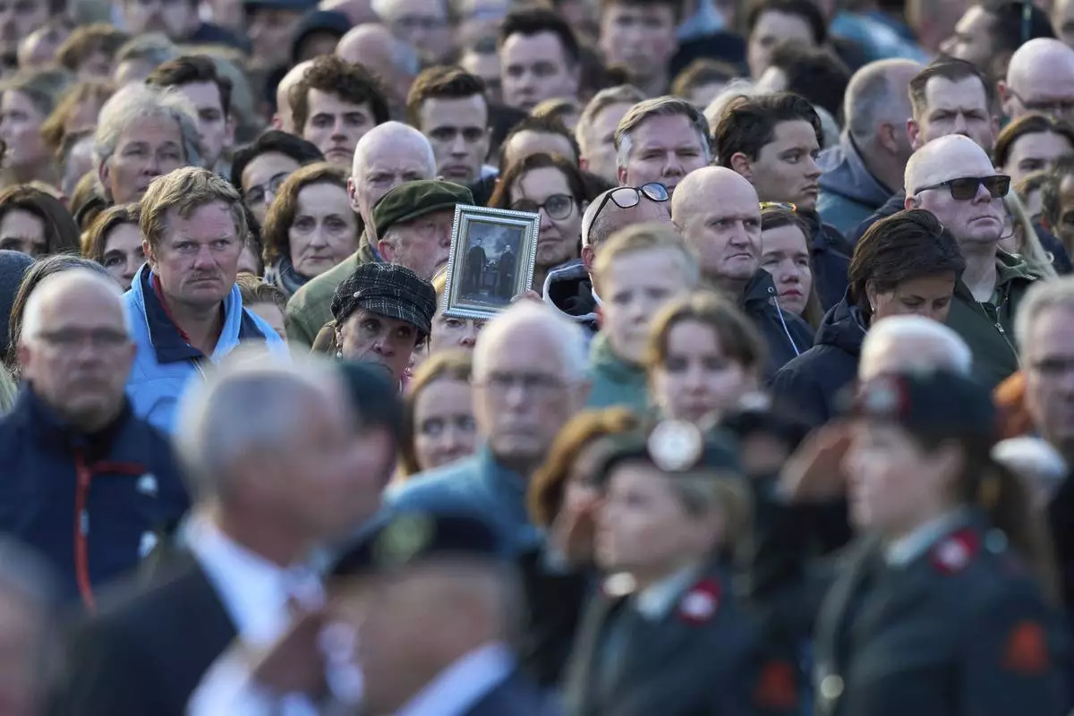 People attend a solemn annual national service to commemorate the war dead in Amsterdam, Netherlands, Sunday, May 4, 2025. (AP Photo/Peter Dejong)