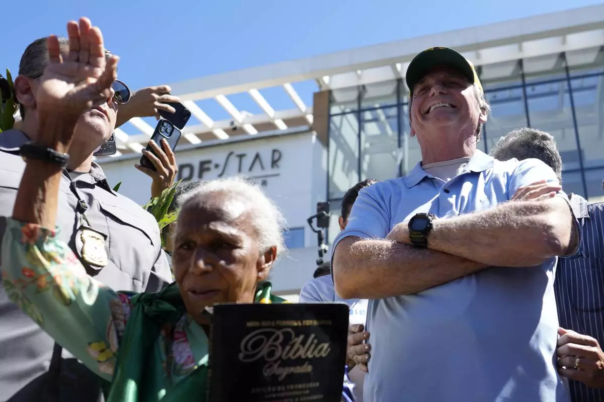 Bolsonaro appeared stiff and solemn as he walked outside. But his face brightened as he greeted a cheering crowd of supporters waving Brazilian flags and filming with their phones. “Hallelujah!" some shouted.