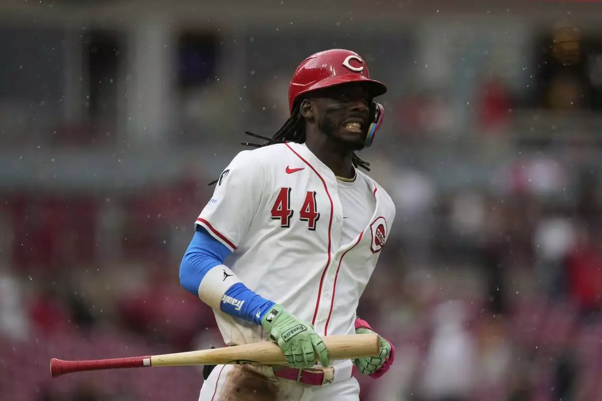 With two outs, a runner aboard and rain falling in the fifth, Elly De La Cruz hit a shot down the left-field line for Cincinnati that was initially ruled a home run before the umpires gathered and changed the call to a foul ball.