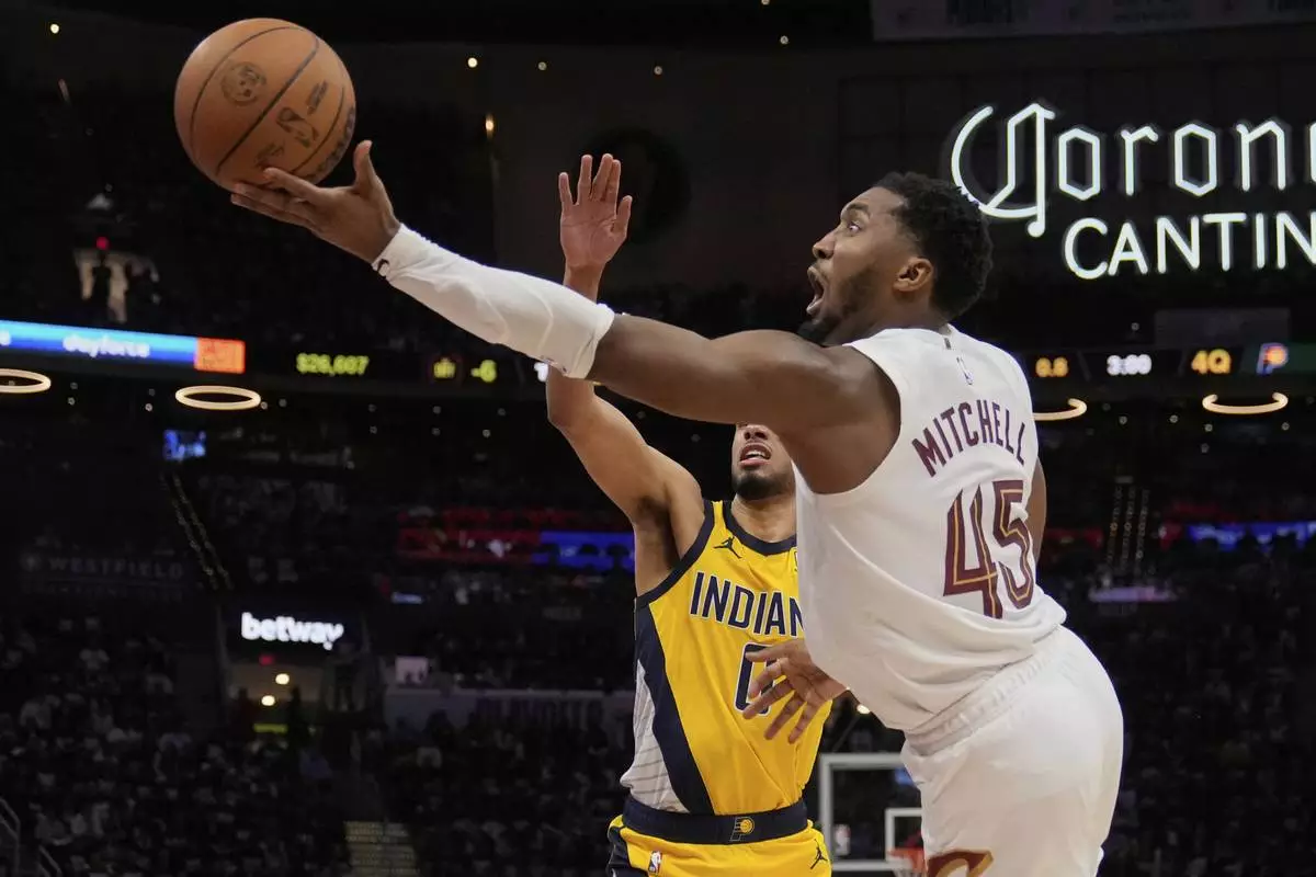 Donovan Mitchell led Cleveland with 33 points and broke Michael Jordan’s NBA playoff record with his eighth straight game of at least 30 points in a series opener.
