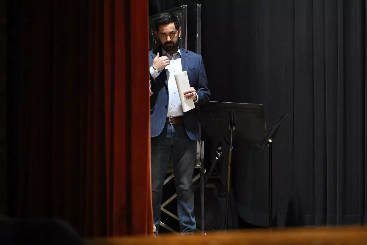 An audience member listens to U.S. Rep. Mike Lawler, R-N.Y., during a town hall, Sunday, May 4, 2025, in Somers, N.Y. (AP Photo/Jessica Hill)
