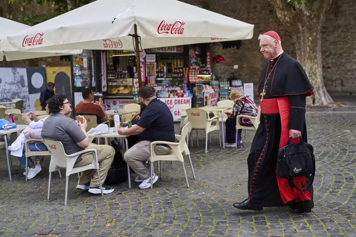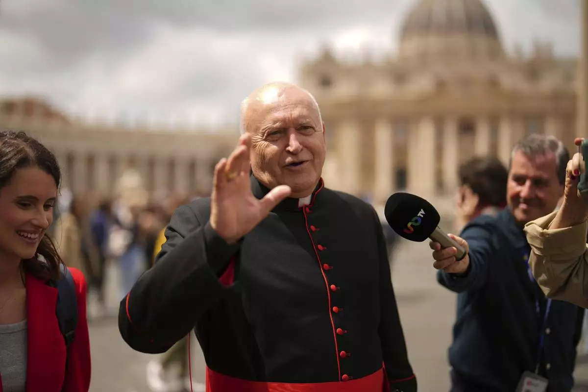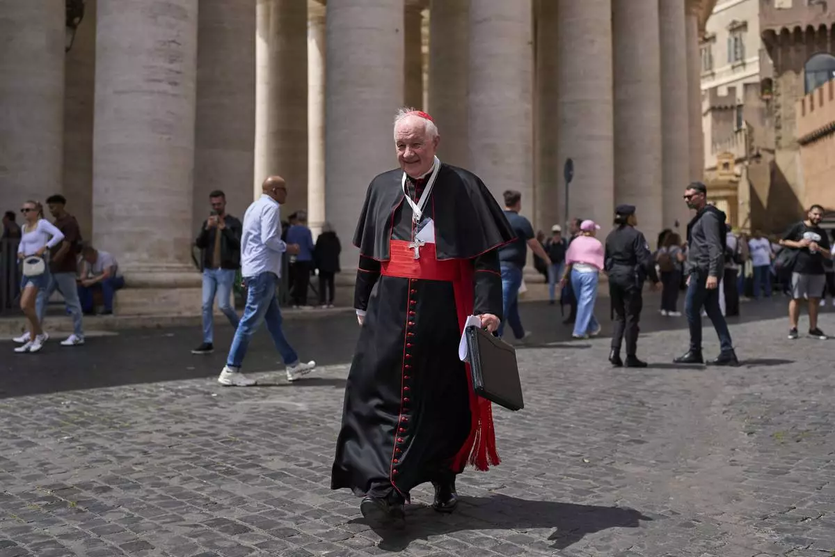 Cardinal Marc Ouellet walks outside the Vatican, Tuesday, May 6, 2025. (AP Photo/Bernat Armangue)