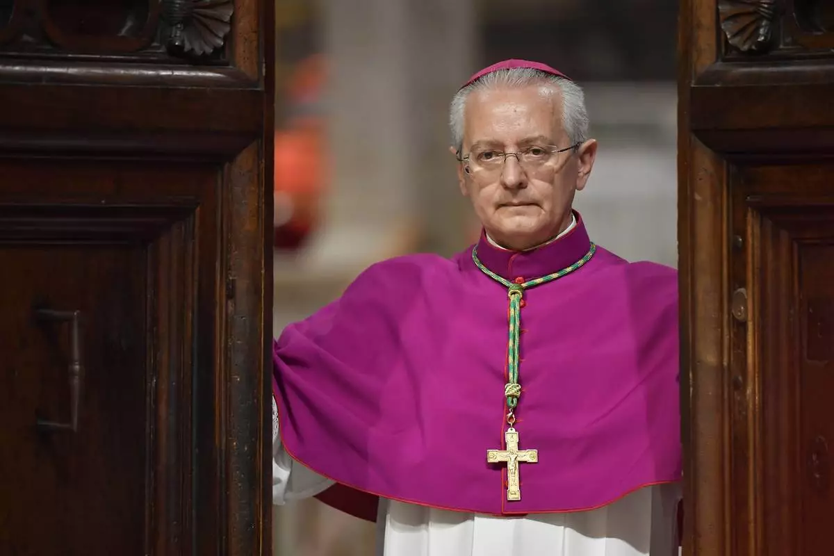 Vatican Master of Ceremonies, Archbishop Diego Giovanni Ravelli closes the doors of the Sistine Chapel at the Vatican to start the conclave to elect the successor of late Pope Francis, Wednesday, May 7, 2025. (Vatican Media via AP)