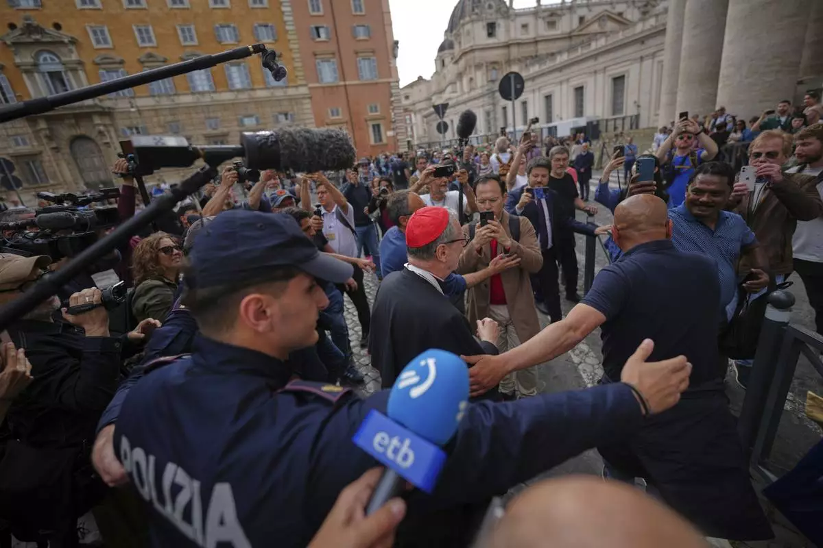 Cardinal arrives at the Vatican, Saturday, May 3, 2025, to attend the General Congregation of cardinals in the New Synod Hall where they are preparing for the upcoming conclave starting on May 7, to elect the 267th Roman pontiff. (AP Photo/Andrew Medichini)