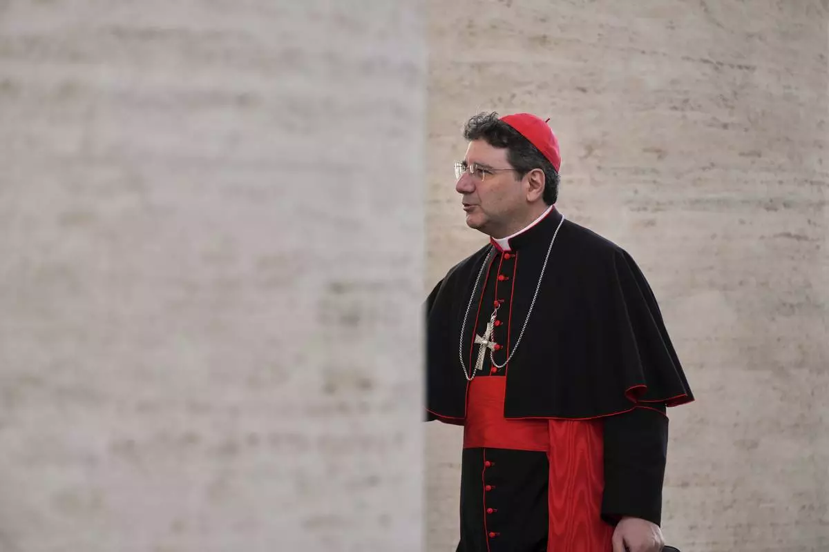 Cardinal Claudio Gugerotti arrives at the Vatican, Monday, May 5, 2025, to attend the General Congregation of cardinals in the New Synod Hall where they are preparing for the upcoming conclave starting on May 7, to elect the 267th Roman pontiff. (AP Photo/Andrew Medichini)