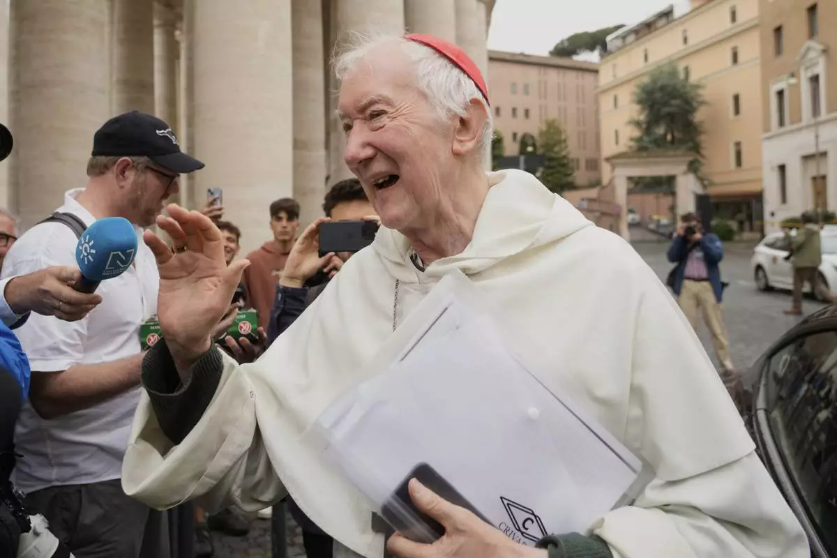Cardinal Joseph Coutts arrives at the Vatican, Monday, May 5, 2025, to attend the General Congregation of cardinals in the New Synod Hall where they are preparing for the upcoming conclave starting on May 7, to elect the 267th Roman pontiff. (AP Photo/Gregorio Borgia)