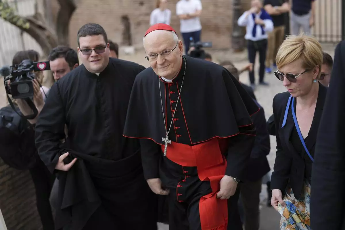 Cardinal Peter Erdo arrives to lead a mass at his titular church of Santa Francesca Romana in Rome, Sunday, May 4, 2025. (AP Photo/Francisco Seco)