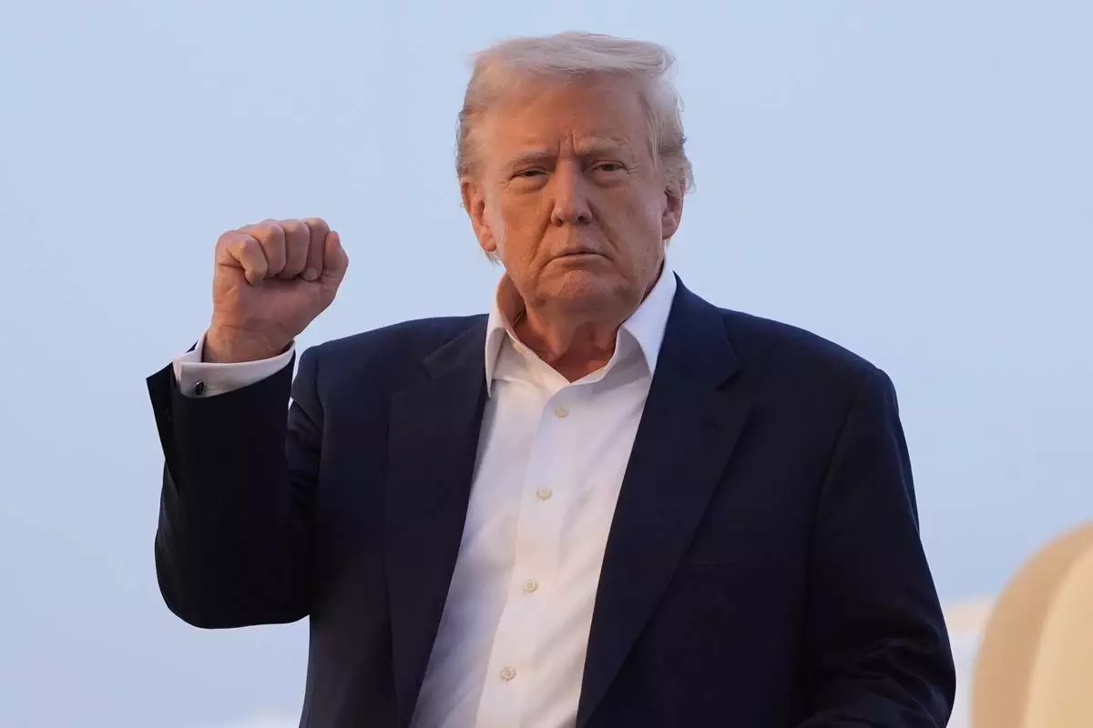 President Donald Trump arrives on Air Force One at Joint Base Andrews, Md., Sunday, May 4, 2025. (AP Photo/Manuel Balce Ceneta)