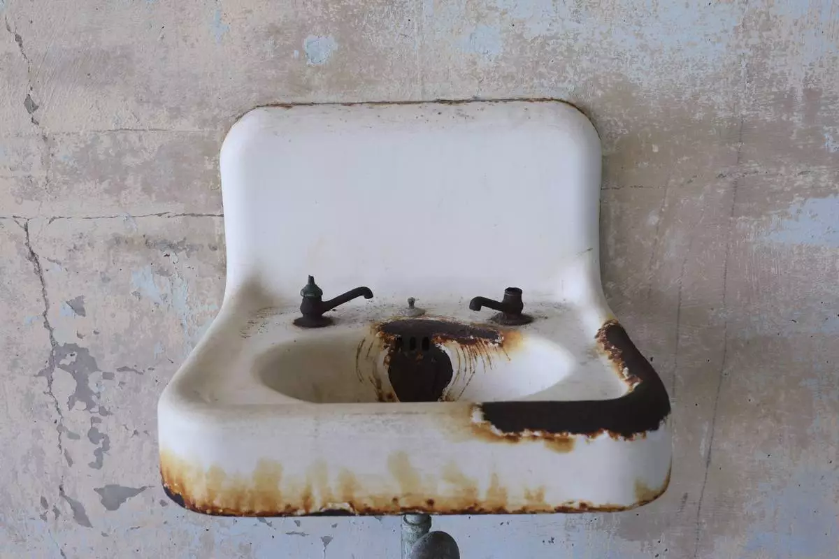 An old sink is shown during a tour of Alcatraz Island in San Francisco, Monday, May 5, 2025. (AP Photo/Jed Jacobsohn)