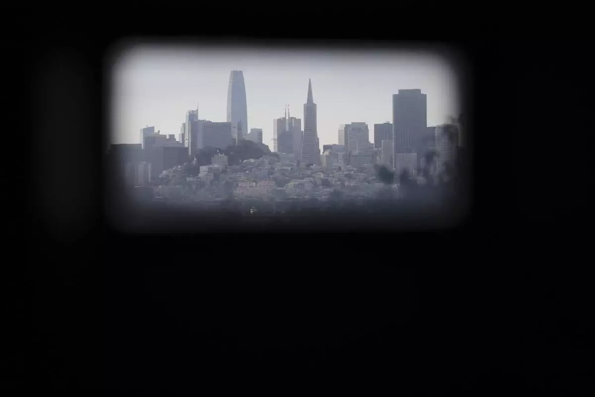 Downtown San Francisco is seen from Alcatraz Island Monday, May 5, 2025, in San Francisco. (AP Photo/Jed Jacobsohn)